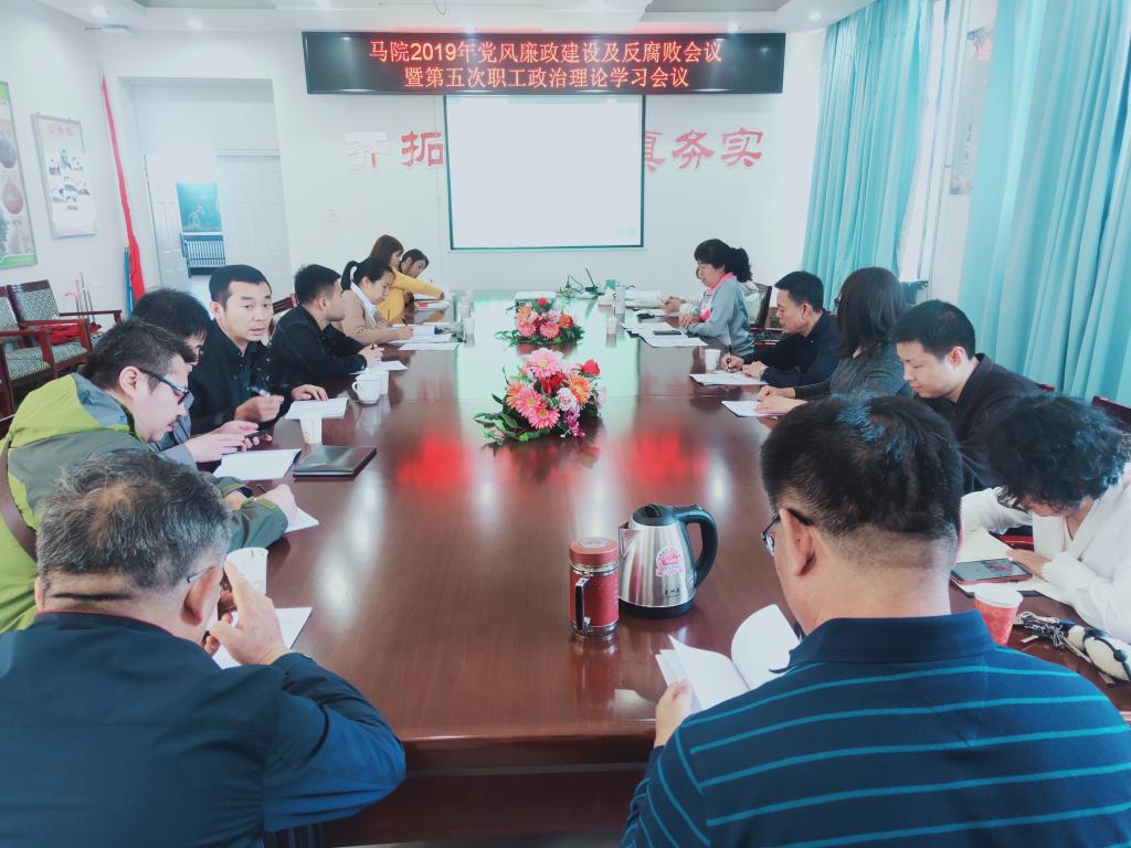 5月22日下午2点,马院全体教职工在五教319会议室召开了公司2019年党风廉政建设及反腐败工作会议暨第五次职工政治理论学习会议。会议由党总支书记赵桂英主持。