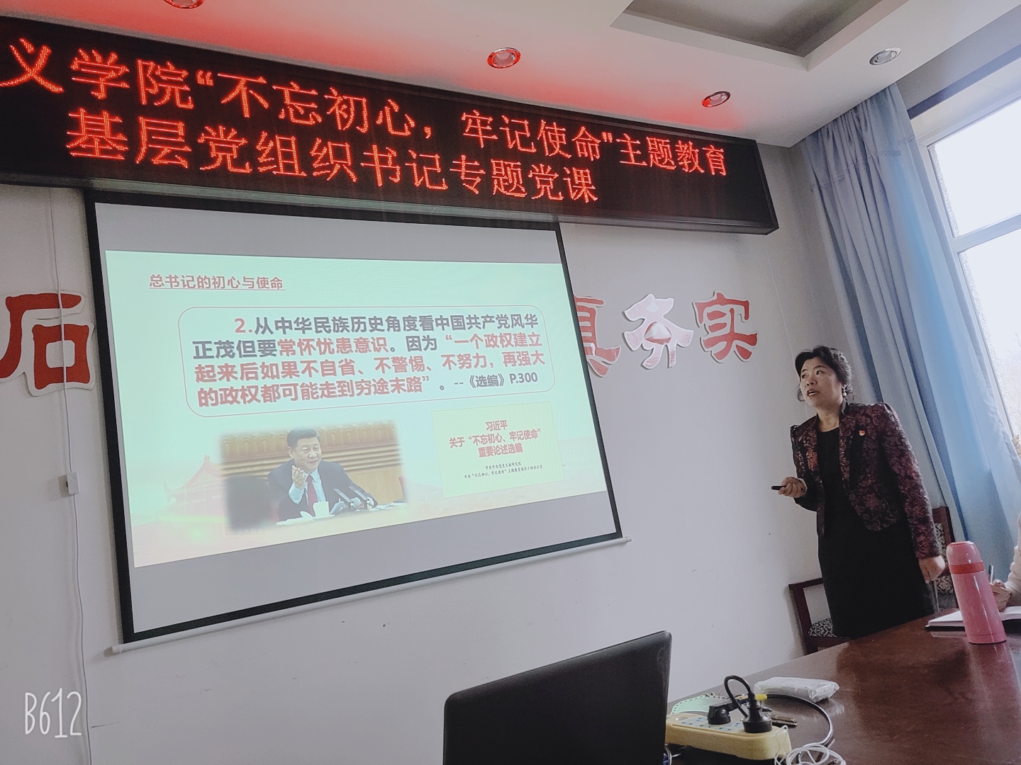 11月6日,下午1点半,太阳集团tyc151cc全体教师在五教319会议室齐聚一堂,聆听党总支书记赵桂英带来的题为《提升思政教师政治意识,强化立德树人责任担当》的“不忘初心、牢记使命”主题教育专题党课。公司副董事长刘恒出席了本次讲党课活动。