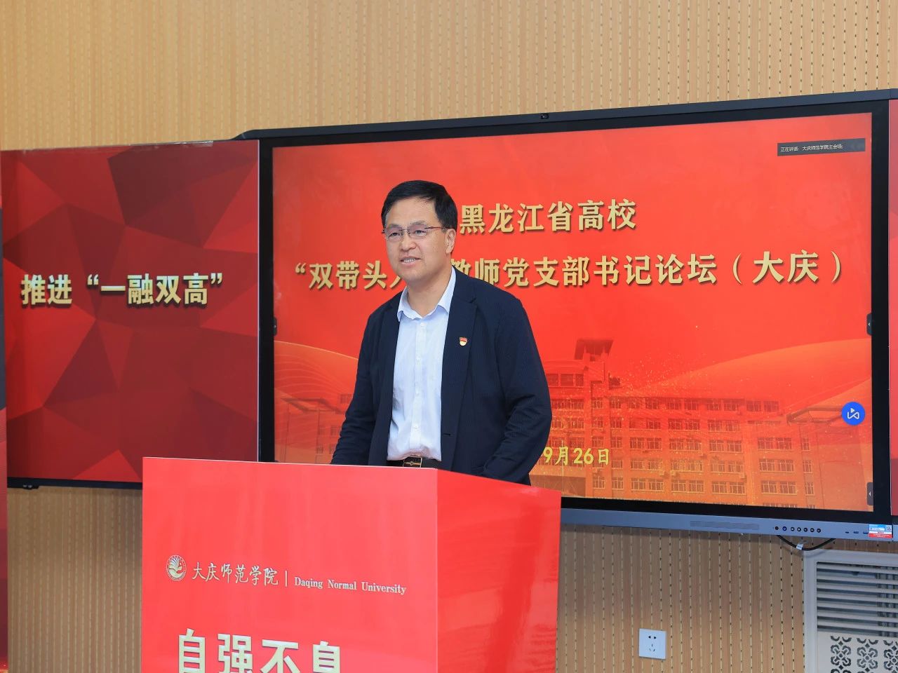 9月26日下午,由黑龙江省委教育工委组织部主办、公司党委承办的“黑龙江省高校‘双带头人’教师党支部书记论坛(大庆)”在教师技能训练中心201智慧教室举办。本次论坛采取线上线下相结合方式进行。公司党委副书记、工会主席徐晓东,组织部负责人殷相国,以及来自包括公司在内的东北石油大学、黑龙江八一农垦大学、哈尔滨医科大学大庆校区、黑河公司、大庆职业公司、大庆医学高等专科公司、黑龙江能源职业公司等8所高校的党委组织部相关负责人、优秀“双带头人”教师党支部书记代表参加。论坛由公司党委组织部组织建设科科长刘彰基主持。