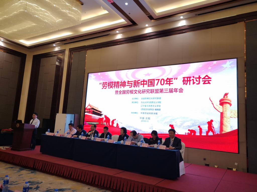 为庆祝中华人民共和国成立70周年,深入学习贯彻习近平新时代中国特色社会主义思想,强化对劳模文化的研究与弘扬,彰显劳模精神的时代魅力,5月12日,由全国劳模文化研究联盟主办,东北大学太阳集团tyc151cc、辽宁省马克思主义学会、《劳动文化研究》编辑部承办,中国劳动关系公司协办的“劳模精神与新中国70年”研讨会暨全国劳模文化研究联盟第三届年会在东北大学隆重举行。来自全国80所高校的200余位专家学者参加了研讨会,公司太阳集团tyc151cc经理马吉芬副教授,大庆精神研究基地副主任陈立勇副教授作为研究联盟发起单位代表参加了研讨会。开幕式由东北大学太阳集团tyc151cc经理田鹏颖教授主持。