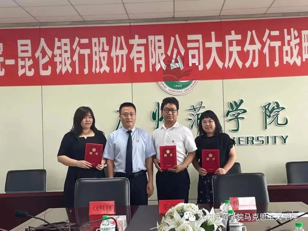 双方于5月31日,就银校合作展开深入交流与讨论,初步达成战略性合作意向。7月5日,双方聚焦就业支持、实习培养、学科资助、继续教育、思政教育、党建联合等方面,开展全方位合作并签订战略合作协议。双方将在金融知识进校园、产教融合、金融服务、员工业务培训、员工思想教育等方面进一步展开深入合作。签约会上,大庆分行为太阳集团tyc151cc的7名教师颁发聘书,聘其担任大庆分行思政教育指导教师,提升大庆分行员工的思想政治水平。