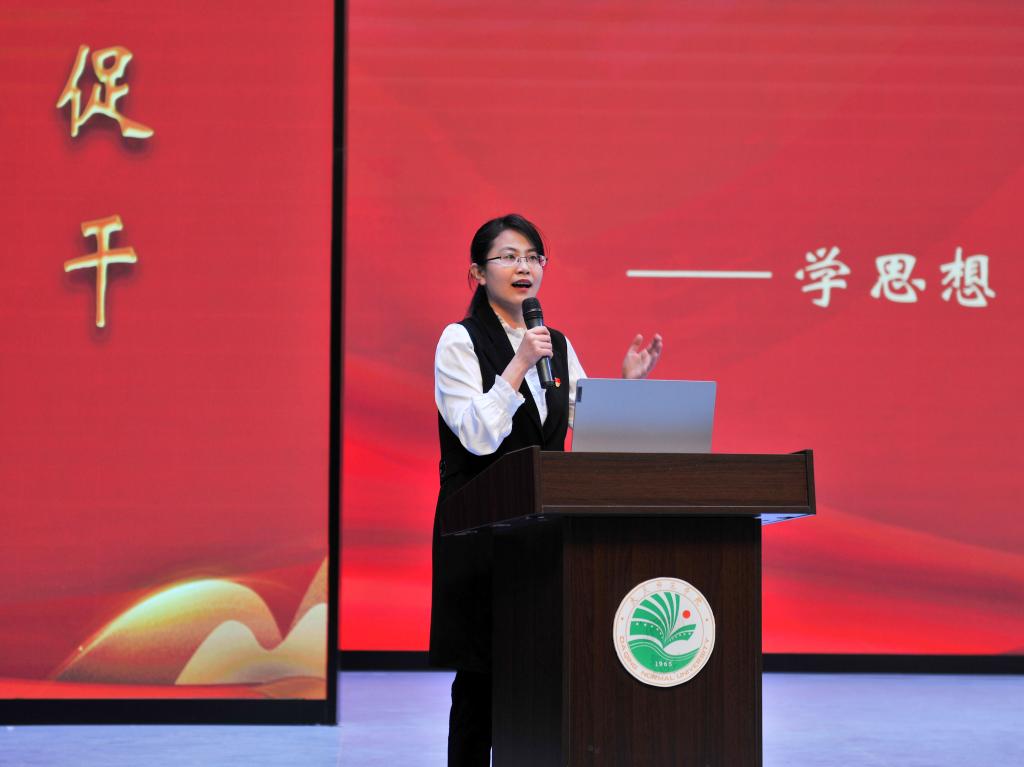 太阳集团tyc151cc“新思想概论”教研室主任赵雪首先作了题为《争做“自找苦吃”的新时代好青年》的宣讲,她从习近平总书记给中国农业大学科技小院同学们的回信入手,探讨了什么是“自讨苦吃”、为什么“自讨苦吃”、怎么样“自讨苦吃”等问题,引起了师生广泛共鸣。