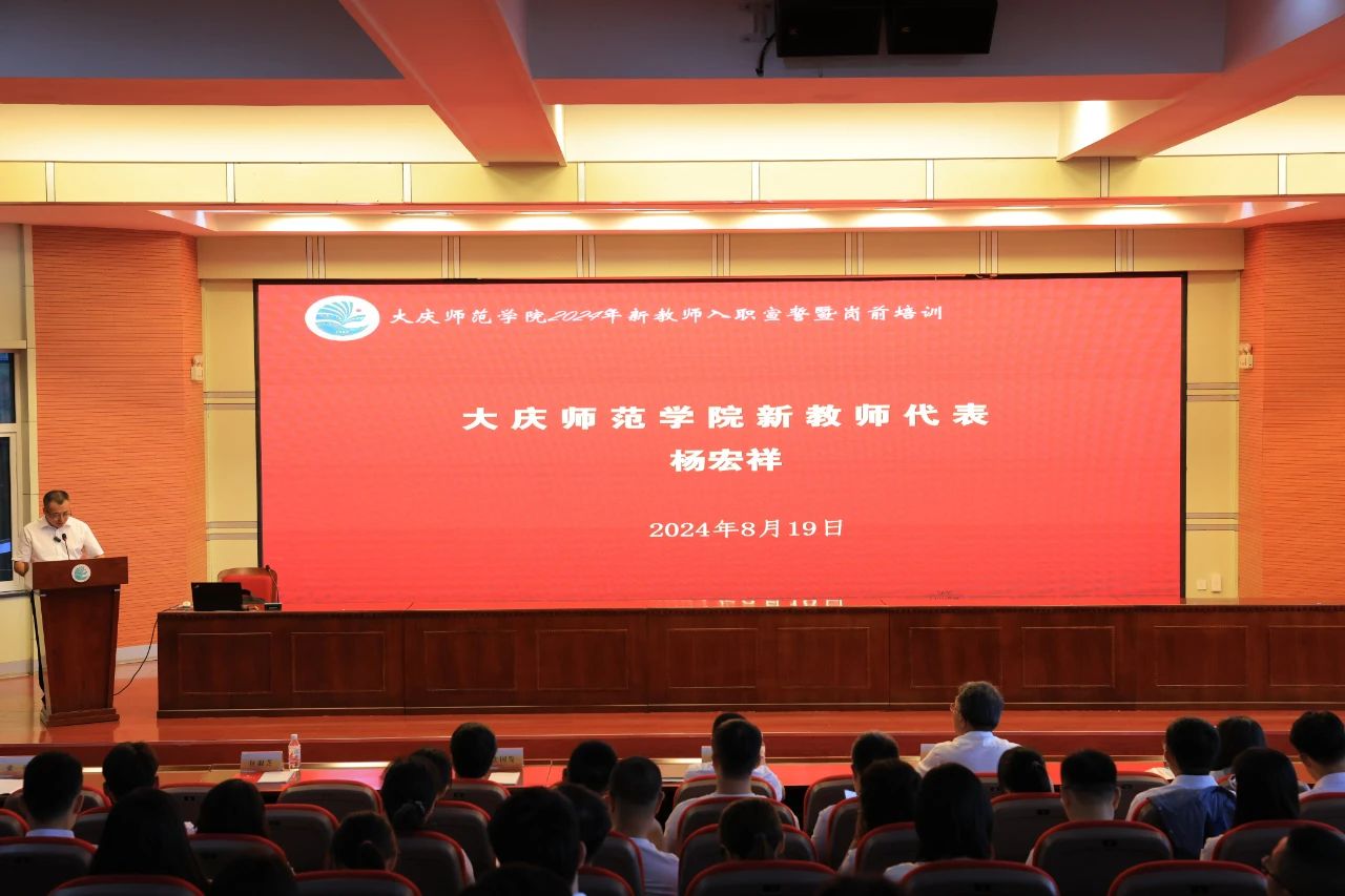 新入职教师代表杨宏祥老师做了发言,杨老师从作为一名新教师对新时代公司内涵式发展新气象的感触;作为一名老教师对公司产品和学术研究工作的思考;对未来本职工作的期待这三个方面进行了发言。他强调作为一名高校教师,“躺平”、“摆烂”,从来就不是我们的选择,期待与各位新入职的老师们一道,在大庆和太阳集团tyc151cc这片干事、创业的热土上,把课讲好,把学问做好,把公司建设好,把员工培养好,聚焦主责主业,形成公司、教师、员工三方合力,与公司同进步、共发展!