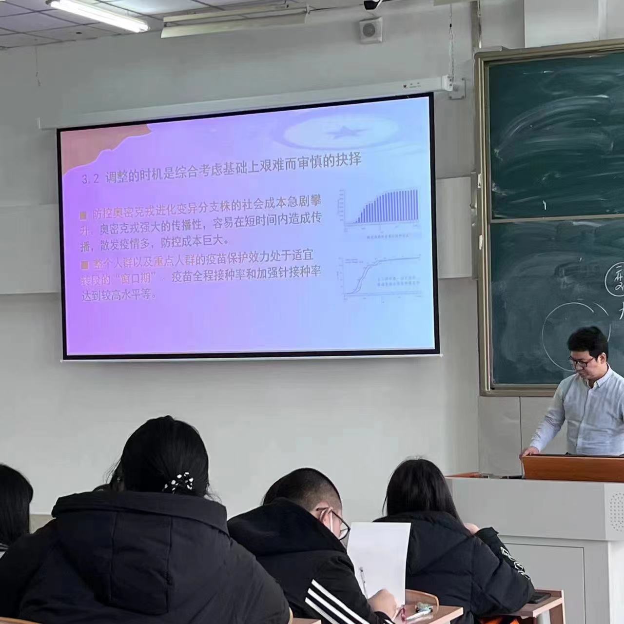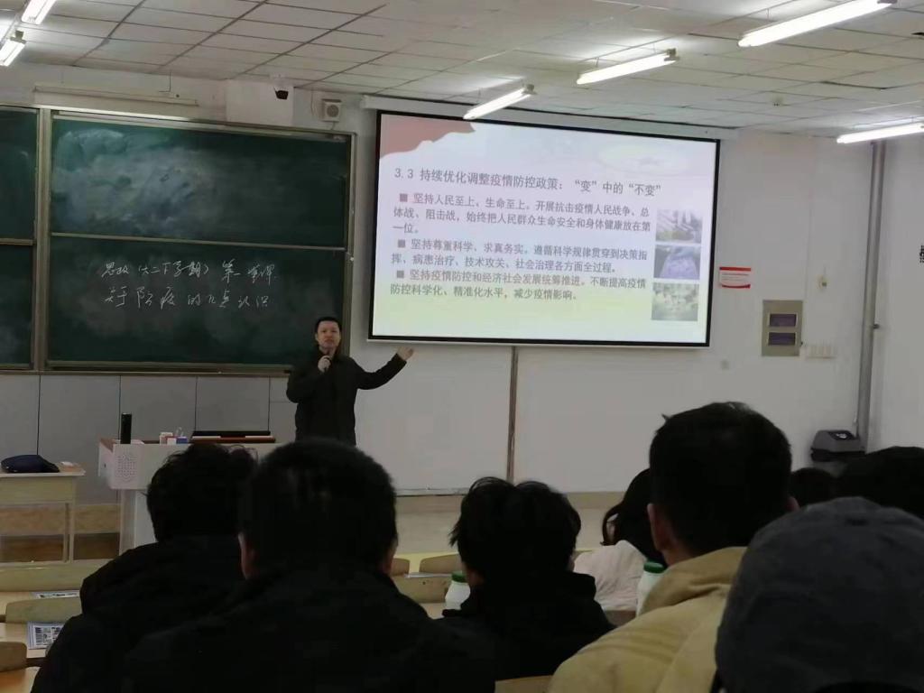 2月27日上课第一天,太阳集团tyc151cc“概论”及“原理”两个教研室的任课教师走进课堂,围绕如何看待三年伟大抗疫斗争、如何看待老员工对疫情防控做出的重要贡献、如何充分认识和弘扬伟大抗疫精神等问题为全校大一、大二员工同上“一堂思政课”。公司主要领导、督导以及公司督导分别深入课堂听课,检查指导教学。