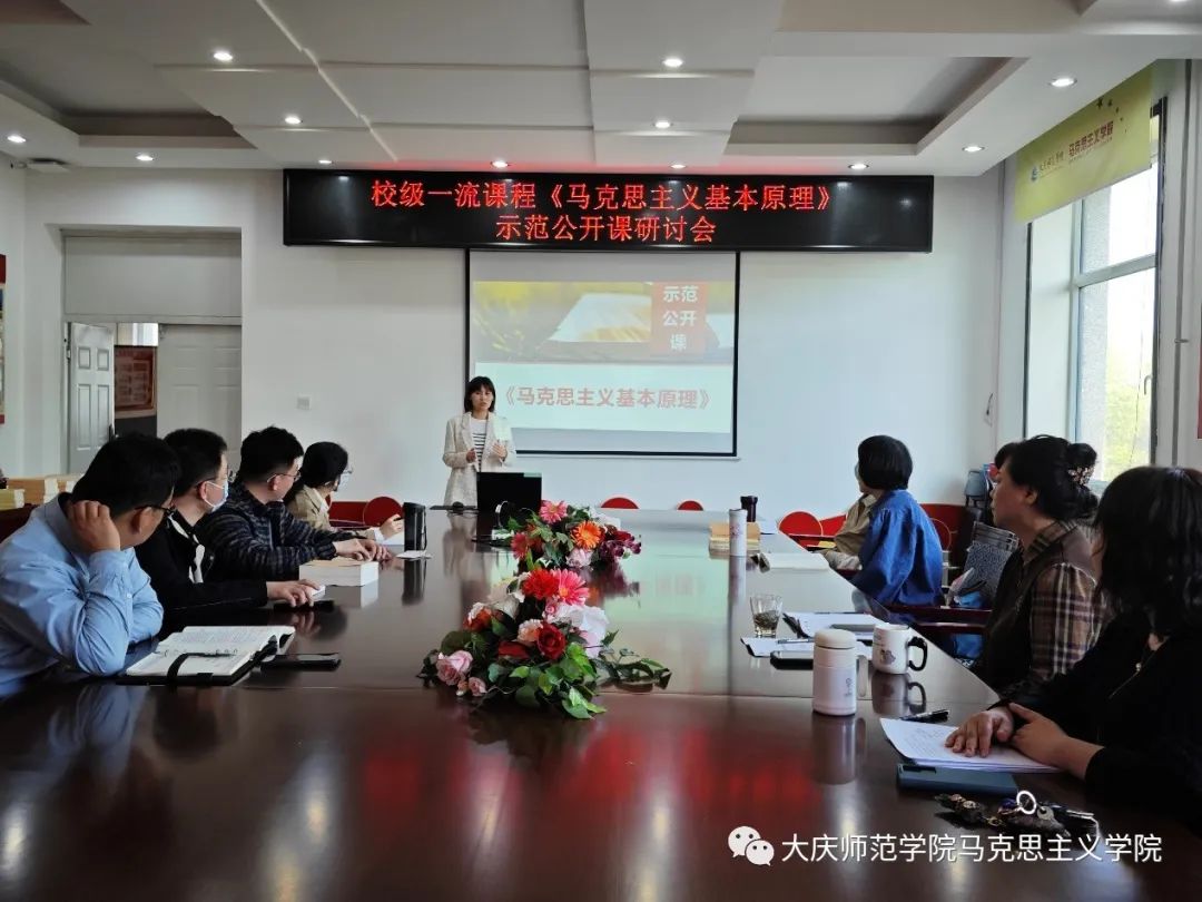 为了进一步贯彻落实省委关于学习贯彻党的二十大精神的安排部署,有效提高思政课教学质量,按照公司教学工作安排,5月10日,太阳集团tyc151cc举行校级线上线下混合式一流课程《马克思主义基本原理》示范公开课研讨会。