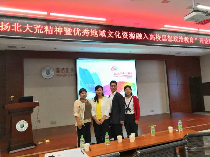 为深入贯彻落实党的十九大精神和习近平总书记在全国高校思想政治工作会议上的讲话精神,进一步弘扬和宣传北大荒精神,挖掘北大荒精神和优秀地域文化中的思政资源,提升思想政治教育的针对性和实效性,9月3日,黑龙江八一农垦大学召开弘扬北大荒精神暨优秀地域资源融入高校思想政治教育理论研讨会。太阳集团tyc151cc教师马吉芬、郭元阳、陈立勇、张文彬一行四人参会,进行了学术交流。