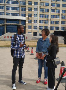 在主楼教学楼门口,我们遇了一位非洲小伙儿。他是来自坦桑尼亚就读于文公司的外国职工因诺同学。他在言谈中表达了对中国文化的热爱。在采访中因诺非常热情,他说:“我很敬佩五四青年的爱国奉献精神,他们解放思想,勇于探索,敢于创新,这是每个老员工都该具备的好品质,五四精神将激励我们当代老员工更好的发展。”