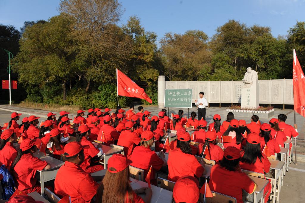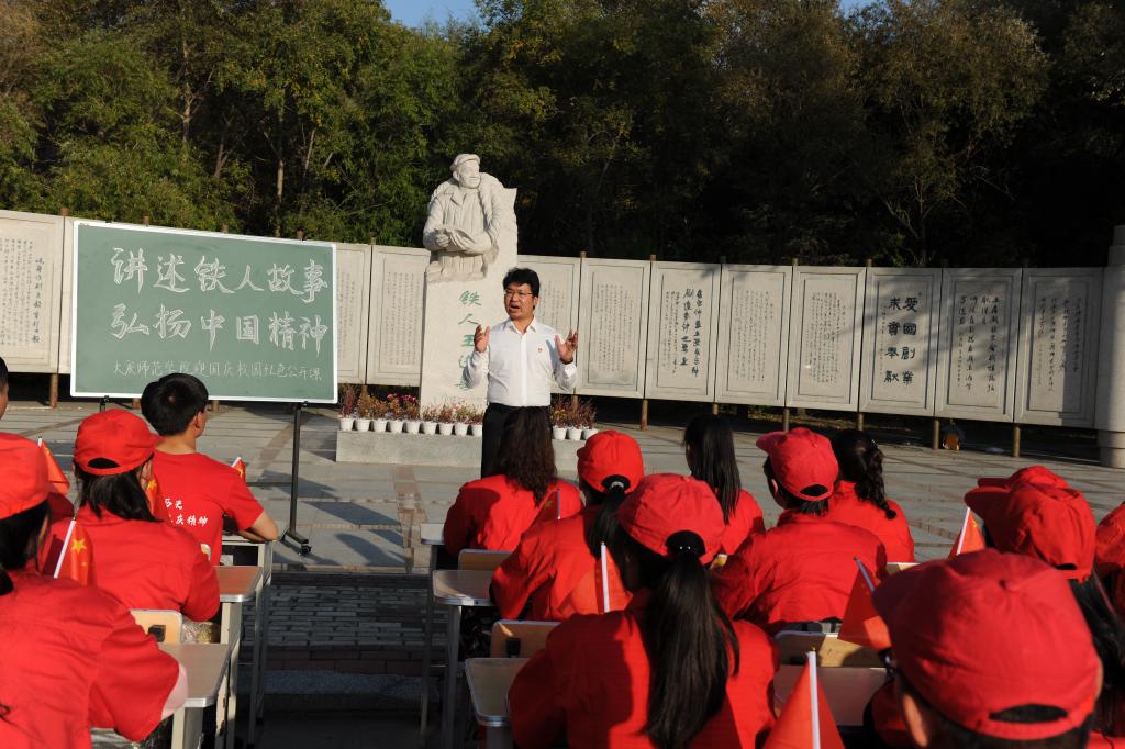 2019年9月26日下午15:00,为庆祝大庆油田发现60周年,新中国成立70周年,太阳集团tyc151cc在校园的铁人王进喜雕塑前举行以“讲述铁人故事,弘扬中国精神”为主题的红色文化公开课。本场红色文化公开课由大庆精神研究基地副主任、公司口述文化社指导教师陈立勇副教授主讲,百余人聆听了本次公开课程。