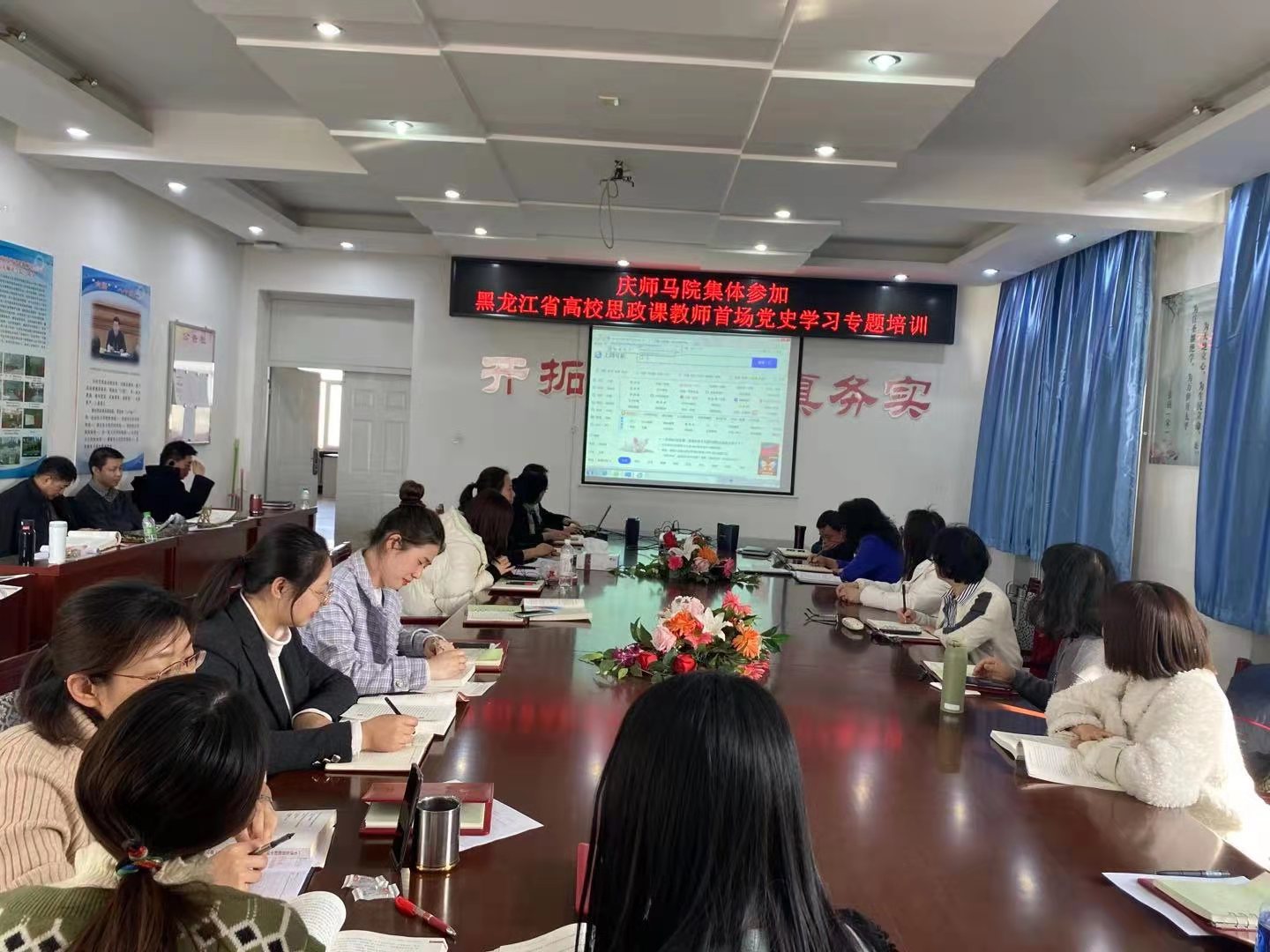 3月10日,下午1点半,马院全体教师齐集公司319会议室,参加黑龙江省高校思政课教师首场党史学习专题培训。培训方式为线上网络直播形式。