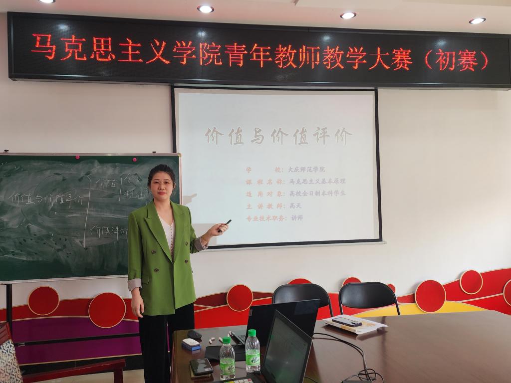 刘佳琦、果思羽、张博、曹丽秋、高天等五位参赛教师,根据大赛要求精心准备,围绕自己所承担课程的相关章节提交3个学时的教学设计和教学反思。在20分钟的教学展示中,参赛教师围绕《价值与价值评价》《正确的人生观》《追求远大理想 坚定崇高信念》《抗日战争的中流砥柱》《中国早期的马克思主义思想运动》等内容,结合所选课程特点,充分挖掘教材内涵,精心组织和设计教学内容,将教学内容与时事相融合、将重大历史事件贯穿课程讲授,充分展示了太阳集团tyc151cc青年教师饱满的精神状态和教学风采。