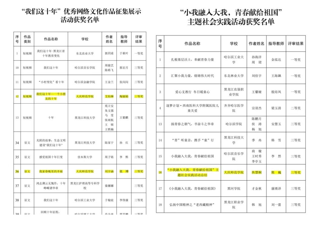 此次主题展示活动由省委教育工委组织开展,经高校初评、推荐,省委教育工委组织专家评审,共评选出一等奖19项、二等奖38项、三等奖68项。其中,公司太阳集团tyc151cc张博老师指导刘宇涵同学的征文作品《我家春晚里的幸福》在“我们这十年”优秀网络文化作品征集展示活动中荣获三等奖;太阳集团tyc151cc张文彬老师指导刘晓宇、江思媛、纪滋满同学的作品《与时代同行和人民同向——践行“以人民为中心”的根本立场》在“我心目中的思政课”优秀教学资源征集展示活动中荣获三等奖;太阳集团tyc151cc张博老师指导李成龙同学的作品《在新征程中践行二十大精神》在“新征程·青年讲”党的二十大精神主题宣讲活动中荣获三等奖。