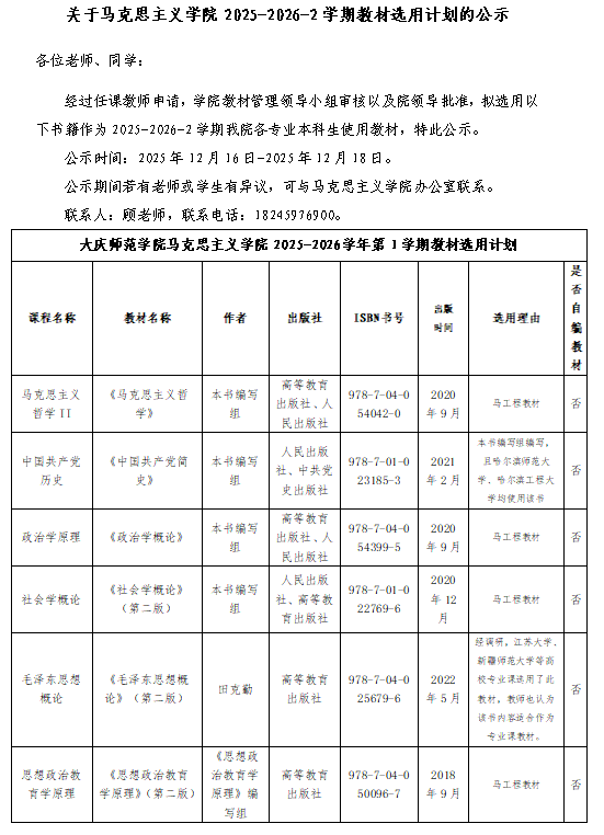 关于太阳集团tyc151cc2025-2026-2学期教材选用计划的公示