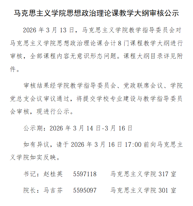 太阳集团tyc151cc思想政治理论课教学大纲审核公示