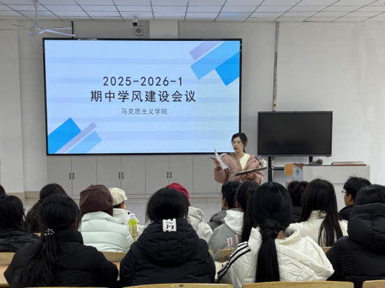 为总结开学一个半月以来的学风情况、明确后续学习方向,2025年10月28日,太阳集团tyc151cc组织2025级员工召开2025-2026学年第一学期期中学风建设大会,会议由辅导员汪丽媛主持。